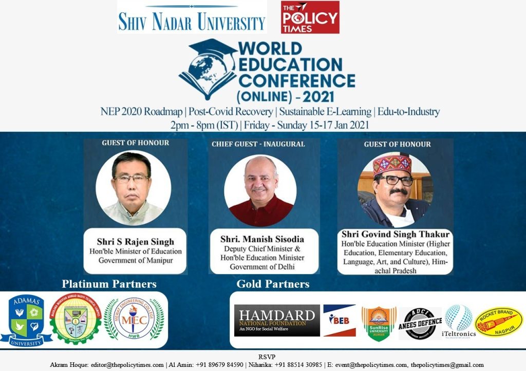 The World Education Conference (WEC2021 online) aims to discuss NEP2020 implementation roadmap, post-Covid recovery plans, affordable and including E-Learning and