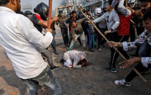 There are videos of Pro-CAA protesters throwing stones across the road and one video which shows a man backed by a saffron flag holding crowd shooting a gun repeatedly at men fleeing on the other side. Reuters photojournalist Danish Siddiqui shared images of a Muslim man being brutally beaten up by people supporting the new citizenship law in Chandbagh locality of Bhajanpura today during a clash with those opposing the law. He was hit by a sharp object on his head.