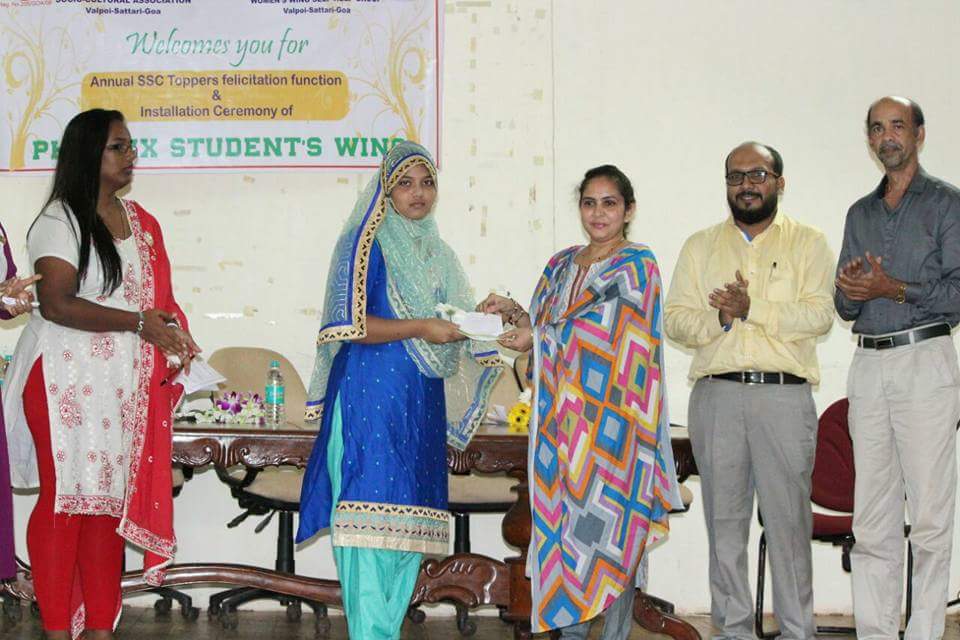 The scholarship was awarded to Asiya Khanam at one of the function organised by Phoenix Socio Cultural Association Valpoi at the hands of Valpoi Municipal Council chairperson Parveen Shaikh,recently.