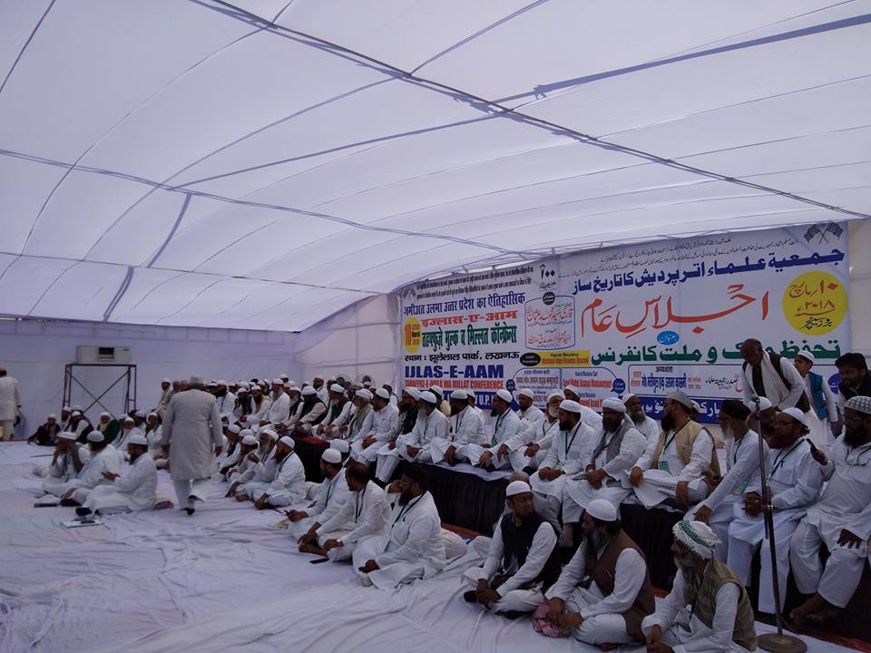 Today here at Jhule Lal Park, Lucknow a grand conference under aegis of Jamiat Ulama-i-Hind state unit was held to demonstrate unity of Indian Society against growing communalism and ideological war to suppress the marginalized section. On this occasion, the Jamiat resolved to demonstrate unity with Dalit community on the occasion of their festivals by holding shared meal get-togethers. JUH also decided to express solidarity with Dalit Community on Ambedkar Jayanti 14 April all across the nation. The resolution also decided to establish united platform of various religious and social groups against communal and ideological politics in the country. In other resolution, the JUH while condemning government approach in amendment in Muslim Personal laws, JUH said that any interference in Muslim Personal law either by the government or judiciary will not be tolerated at any cost. JUH expressed its wiliness to fight against it till the last breath.