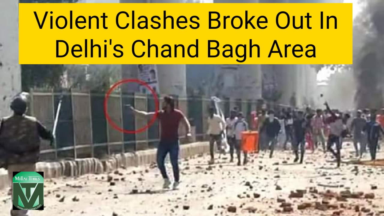 Incidence of violent clashes and firing have been took place in the Chandbagh area in Jafrabadof, northeast Delhi as pro and anti CAA protesters clashed and threw stones at each other. One Petrol pump and two motorcycles have been set ablaze by protesters. Police fired tear gas shells and resorted to lathicharge to disperse the protesters. A large contingent of the Delhi Police and the CRPF have been deployed in Chand bagh, Mustafabad and Jafrabad area to contain clashes. A video is widely circulating in social media in which a unidentified man dressed in a red shirt can be seen brandishing his country-made pistol towards an unarmed Delhi Police officer on the Jaffrabad-Maujpur road. It is reported that he fired 8 rounds before the police overpowered him.