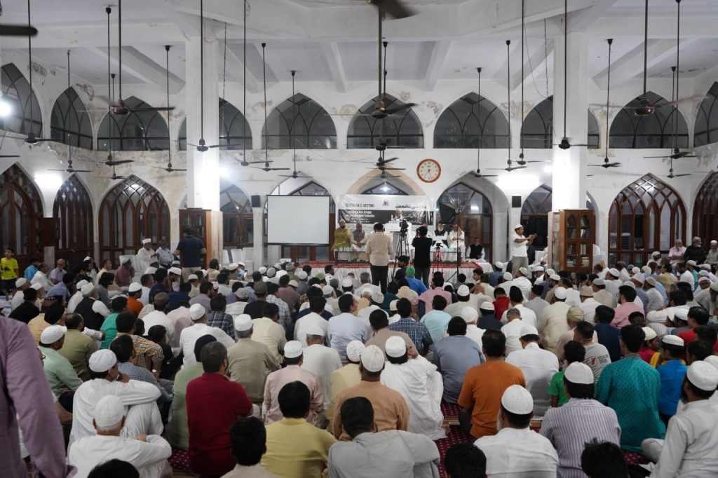 During the meeting, some important condolence messages received by Jamaat from all over the world were also played on the screen for the audience.