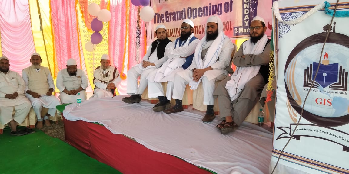 The opening ceremony of Al-Ghazali International School was held with all pomp and show at Karbala Maidan, the heart of Araria city of Bihar. The program was presided over by Maulana Tauqir Ahmad Qasmi, head of department of English Language and Literature, Darul Uloom Deoband. Head of Markaz Group of 40-School and Education department of Markazul Ma’arif, Hojai Assam Dr. Razi Ahmad Qasmi and Dr. Hifzur Rahman Qasmi of Jawaharlal Nehru University graced the occasion with their presence as chief guest and the guest of honor respectively.