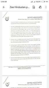 According to notice, “it states that the publication of the impugned video has caused an irreparable injury and loss of reputation to my client (M. Sajjad Nomani). Pursuant to the publication of the impugned video my client has been contracted by several persons, questioning him about the same. My client has been subjected to several damaging and harmful questions and has been further ridiculed after being alleged to be labelled as a “Terrorist” owing to which my client has suffered immense prejudice and loss of goodwill, reputation, standing and goodwill amongst the entire religious institutions, other communities as well as amongst crores of citizens watching the video”.